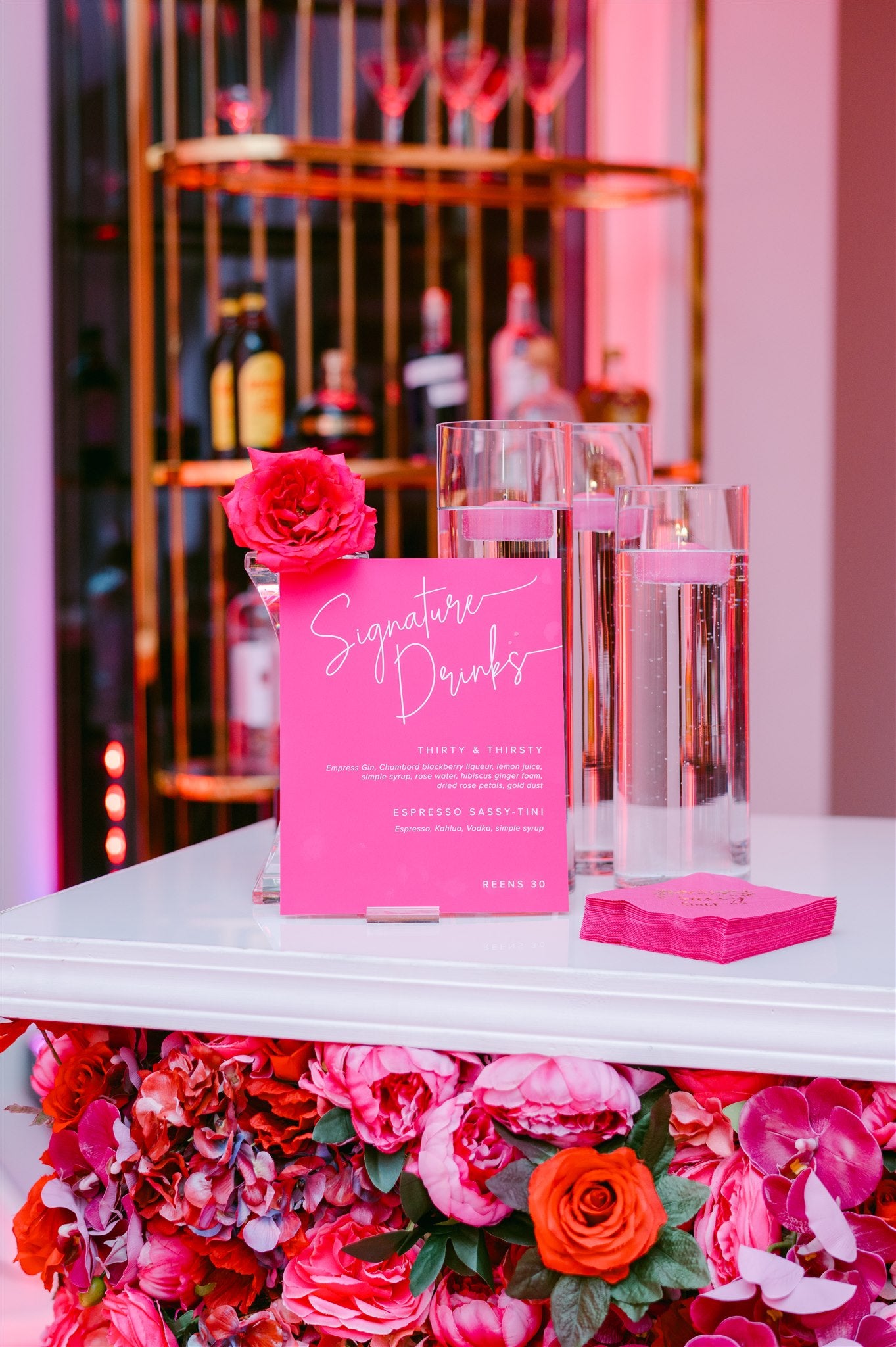 Elevate the social center of your celebration with custom-designed signage that is a striking extension of your aesthetic. Whether showcasing a signature cocktail or presenting a curated menu, our pieces transform the bar area into a cohesive and stylish design moment.